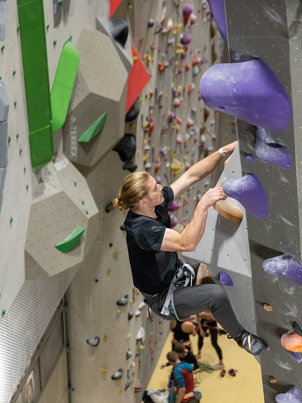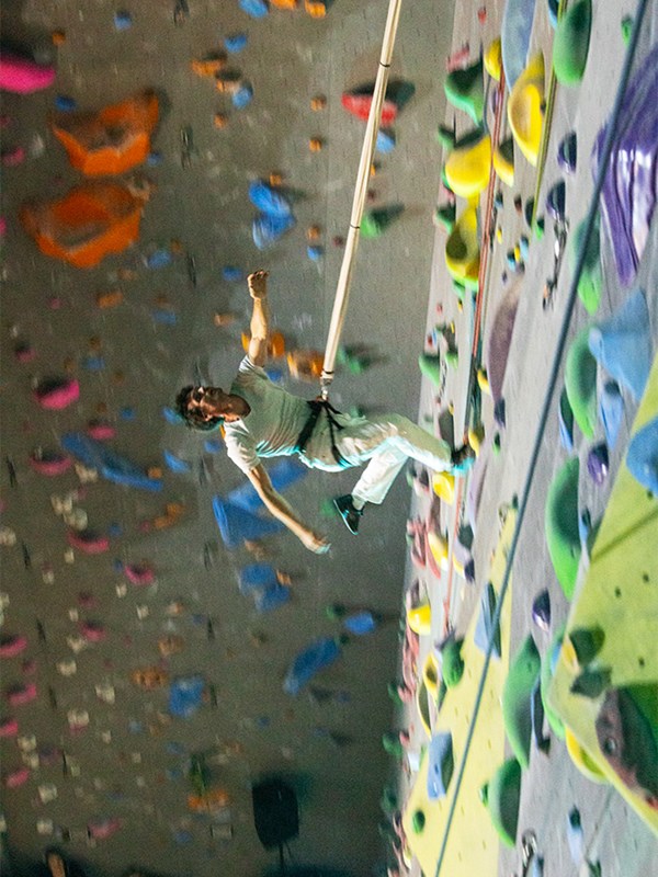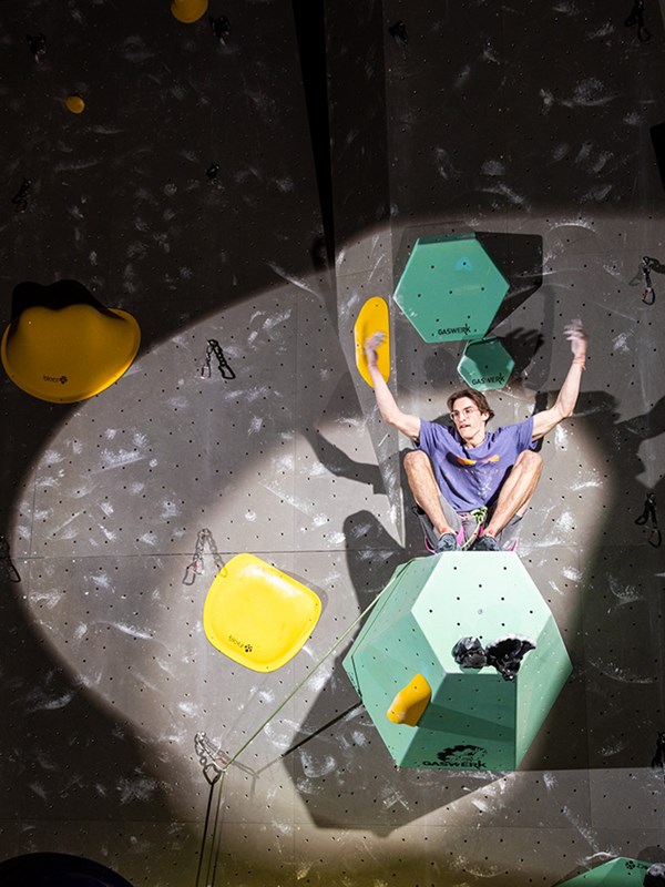 Vorführeffekt: Gilles Meili lieferte den Zuschauern einen ( leider inoffizieller ) Schweizer Rekord im Speedklettern. Trotzdem WOW! Wir gratulieren.